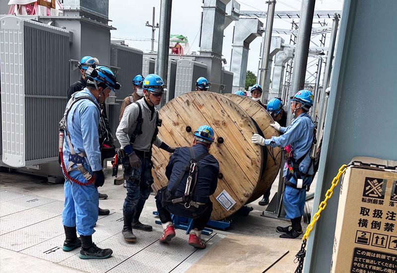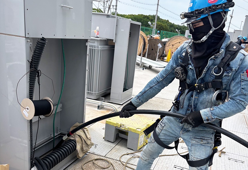 電力を流すためのケーブルを、建物内や地中・配管に通す作業。