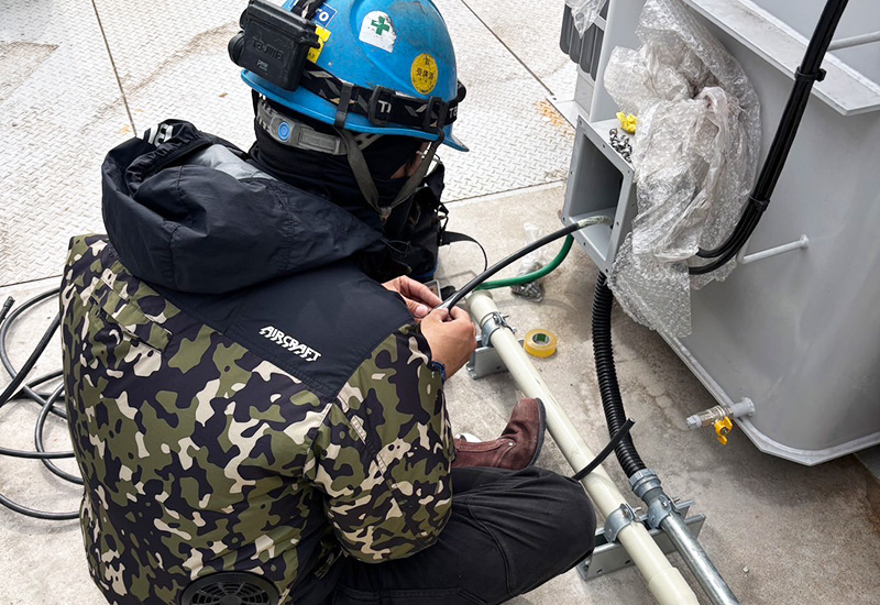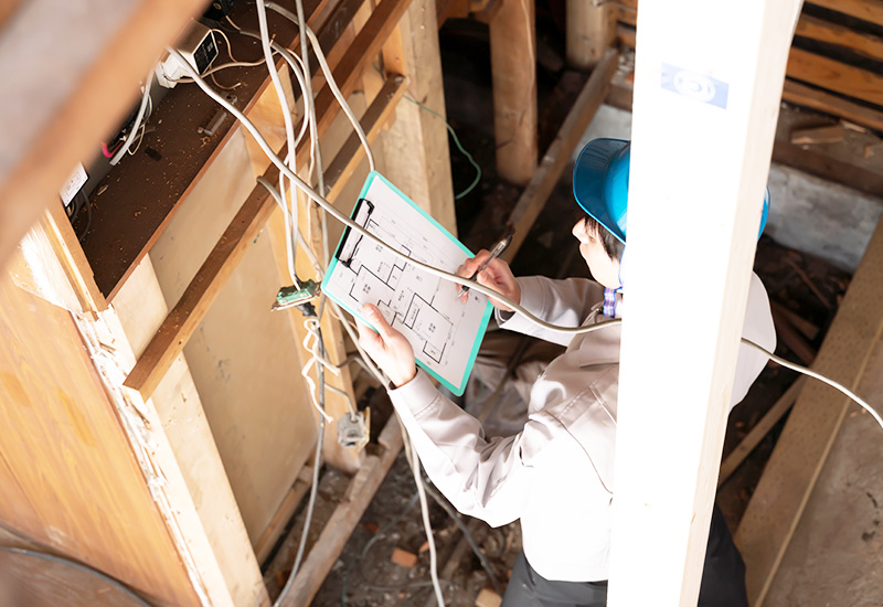 施工後に、電気が正しく流れるか、設備が安全に動くかテストし、トラブルが起こらないよう入念に確認。