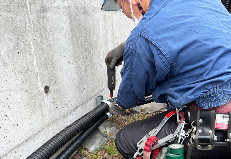 建物と外部の電柱(電力会社)とを接続し、電気を引き込む作業を行います。
